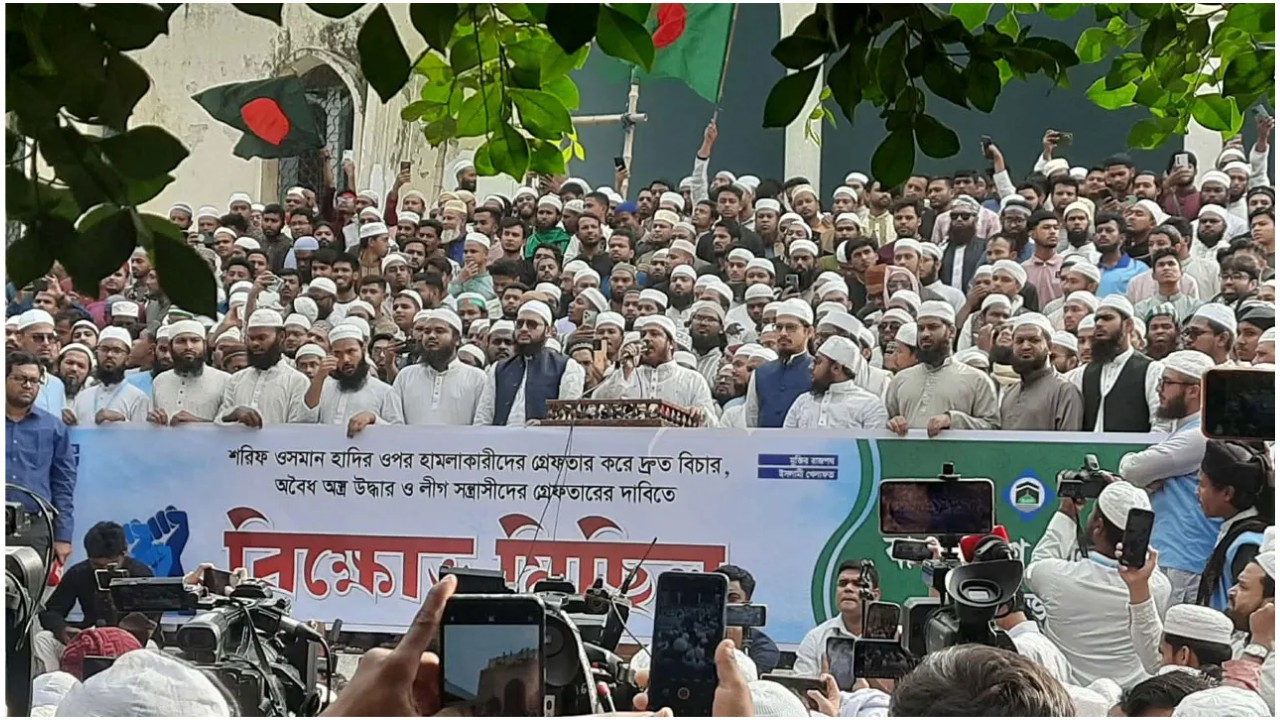 শুক্রবার (১৯ ডিসেম্বর) জুমার নামাজ শেষে জাতীয় মসজিদ বায়তুল মোকাররমে ‘শরিফ ওসমান হাদির ওপর হামলাকারীদের গ্রেপ্তার করে দ্রুত বিচার, অবৈধ অস্ত্র উদ্ধার ও লীগ সন্ত্রাসীদের গ্রেপ্তারের দাবিতে’ বিক্ষোভ কর্মসূচি শুরু করে বাংলাদেশ খেলাফত ছাত্র মজলিস।