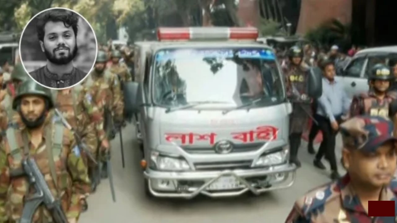 কড়া নিরাপত্তার মধ্যে জাতীয় হৃদরোগ ইন্সটিটিউট থেকে সোহরাওয়ার্দী হাসপাতালের মর্গে নেওয়া হয়েছে ইনকিলাব মঞ্চের মুখপাত্র শরিফ ওসমান হাদির মরদেহ।