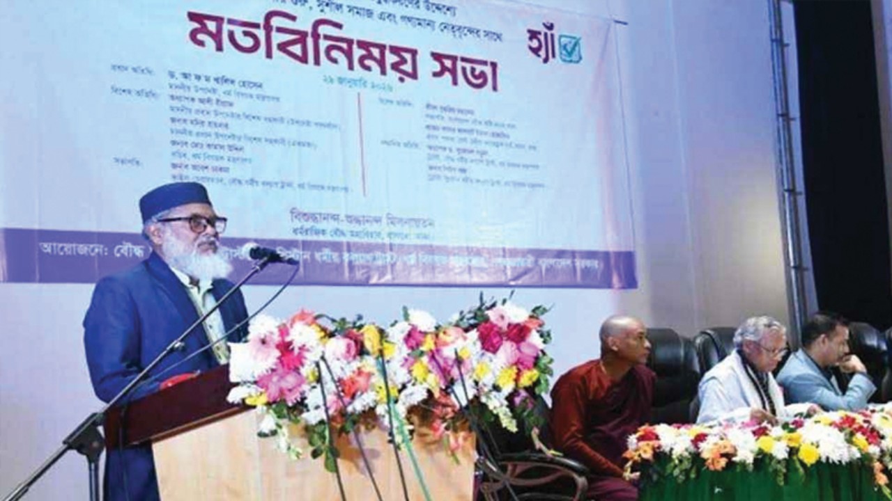 বৃহস্পতিবার (২৯ জানুয়ারি) বিকেলে রাজধানীর বাসাবোতে ধর্মরাজিক বৌদ্ধ মহাবিহার মিলনায়তনে আয়োজিত মতবিনিময় সভায় তিনি এসব বলেন। গণভোটের প্রচার ও ভোটার উদ্বুদ্ধকরণের উদ্দেশ্যে বৌদ্ধ ধর্মীয় কল্যাণ ট্রাস্ট এবং খ্রিষ্টান ধর্মীয় কল্যাণ ট্রাস্ট যৌথভাবে এ সভার আয়োজন করে।