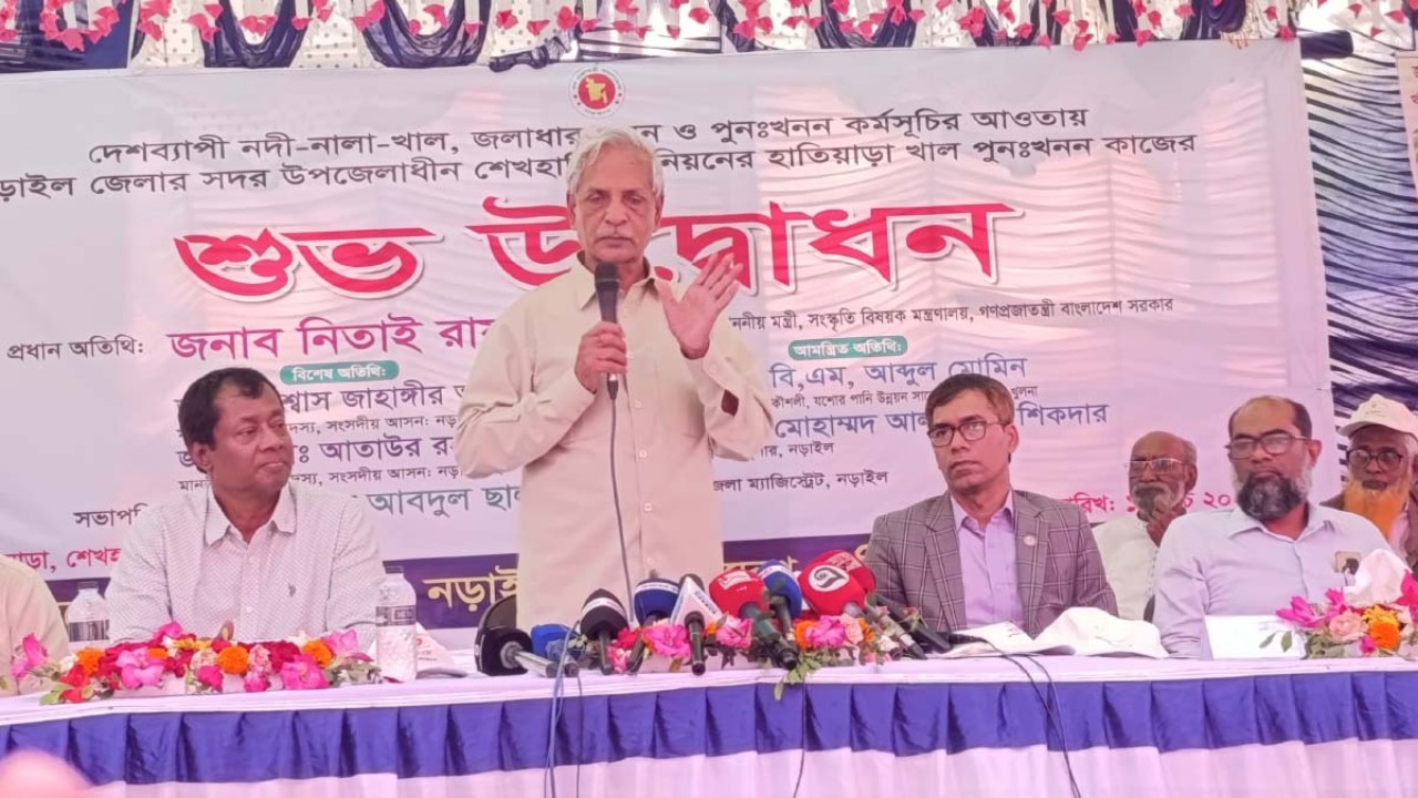বিএনপির কেন্দ্রীয় নির্বাচনী ইশতেহার অনুযায়ী সারাদেশে খাল খনন কর্মসূচির আওতায় নড়াইল জেলায় খাল খননের কাজের উদ্বোধন করেছেন সংস্কৃতি মন্ত্রী নিতাই রায় চৌধুরী।
