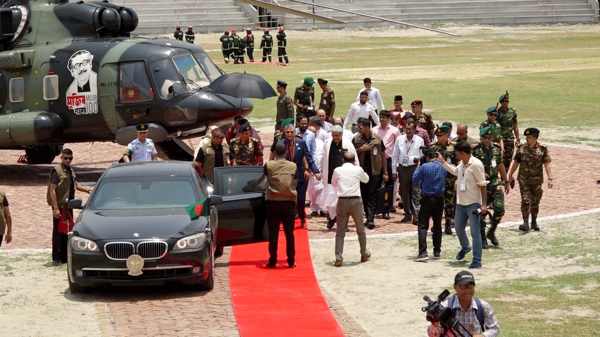 শনিবার (২৮ মার্চ) দুপুর ১২টা ৫০ মিনিটে পাবনা শহিদ অ্যাড. আমিন উদ্দিন স্টেডিয়াম হেলিপ্যাডে এসে পৌঁছান তিনি। এসময় তাকে স্বাগত জানান জেলা প্রশাসক শাহেদ মোস্তফা ও পুলিশ সুপার আনোয়ার জাহিদ। এরপর সার্কিট হাউজে তাকে গার্ড অব অর্নার প্রদান করা হয়।