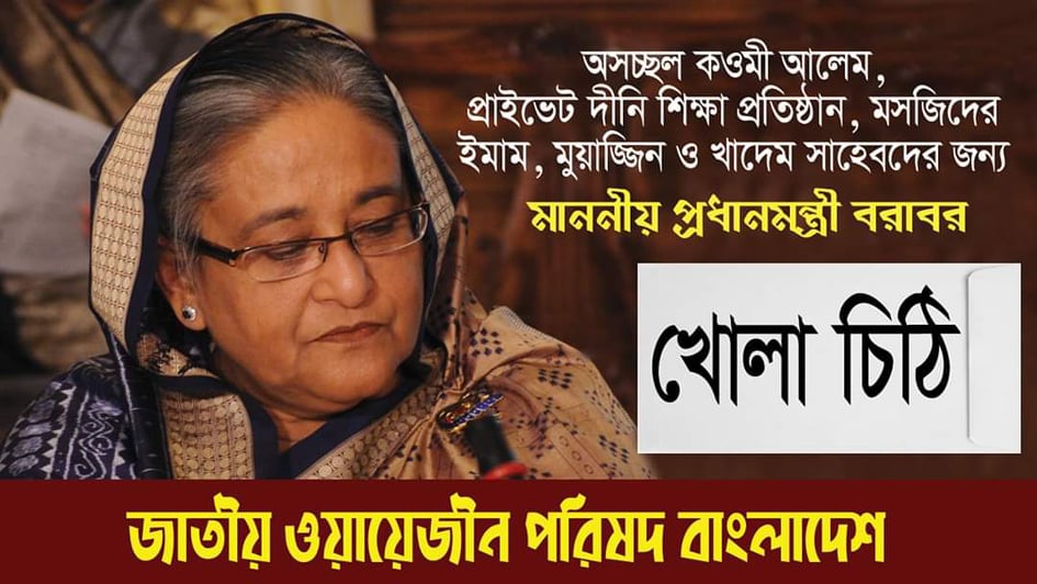 প্রধানমন্ত্রী বরাবর জাতীয় ওয়ায়েজীন পরিষদের খোলা চিঠি