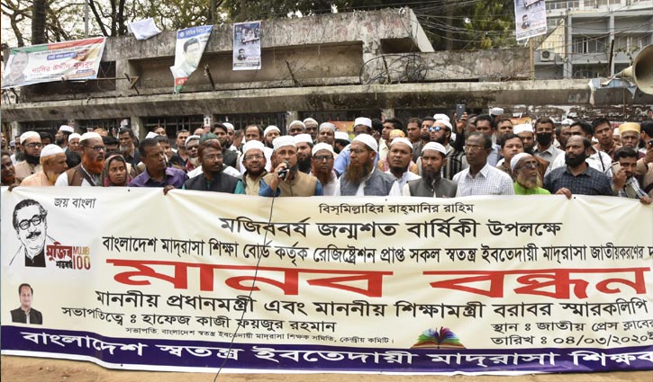 ইবতেদায়ি মাদরাসাগুলোকে জাতীয়করণের দাবিতে মানববন্ধন