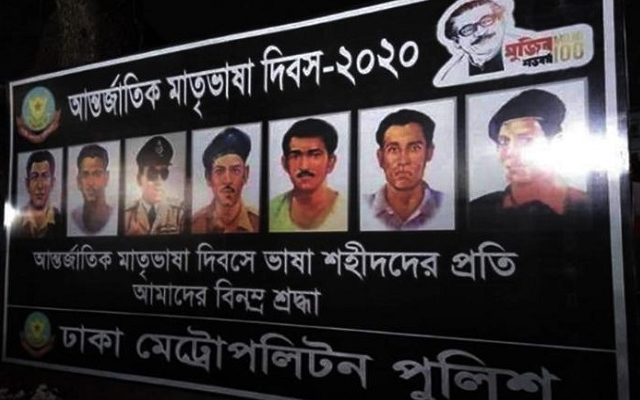 শহিদ দিবসের ব্যানারে ভাষাসৈনিকের বদলে বীরশ্রেষ্ঠদের ছবি!