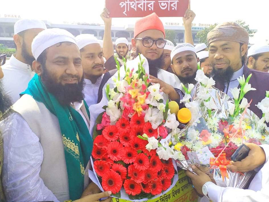 বিমানবন্দরে শায়েখ নেছার আহমদ নাছিরীকে গণসংবর্ধনা