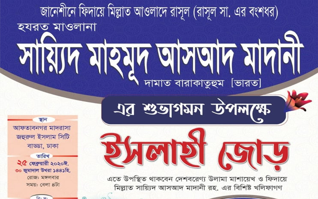 আফতাব নগর মাদরাসায় আসছেন সায়্যিদ মাহমূদ আসআদ মাদানী