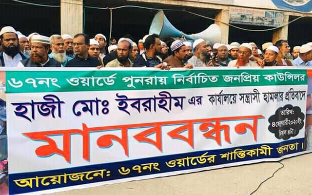 কাউন্সিলর ইবরাহীমের উপর হামলার প্রতিবাদে মানববন্ধন