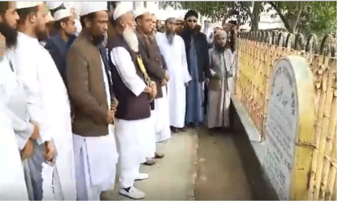 হাফেজ্জী হুজুর রহ-এর কবর জিয়ারত করলেন চরমোনাই পীর
