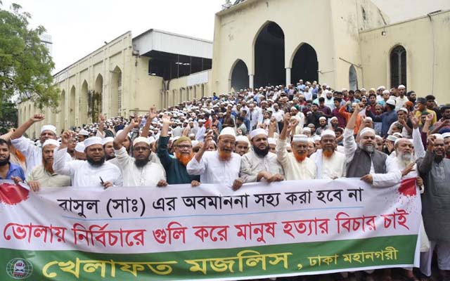 ভোলায় তাওহিদী জনতার সমাবেশে গুলিবর্ষণের প্রতিবাদে খেলাফত মজলিসের বিক্ষোভ