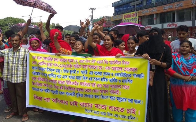 বকেয়া বেতনের দাবিতে মিরপুরে পোশাক শ্রমিকদের বিক্ষোভ