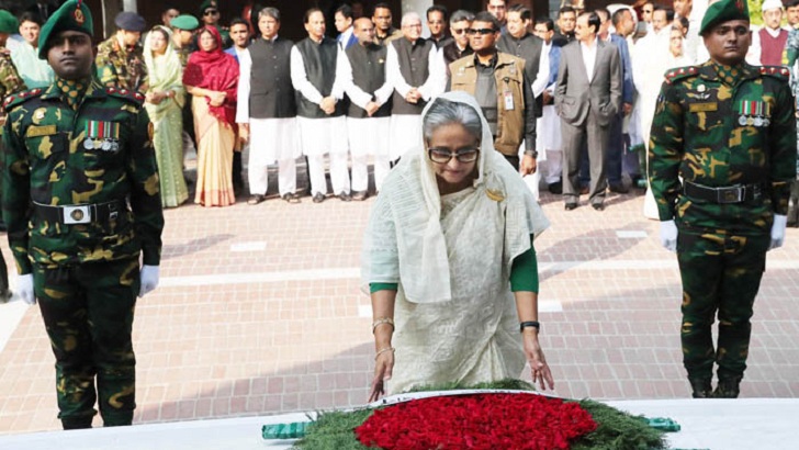 বঙ্গবন্ধুর প্রতিকৃতিতে প্রধানমন্ত্রীর শ্রদ্ধা