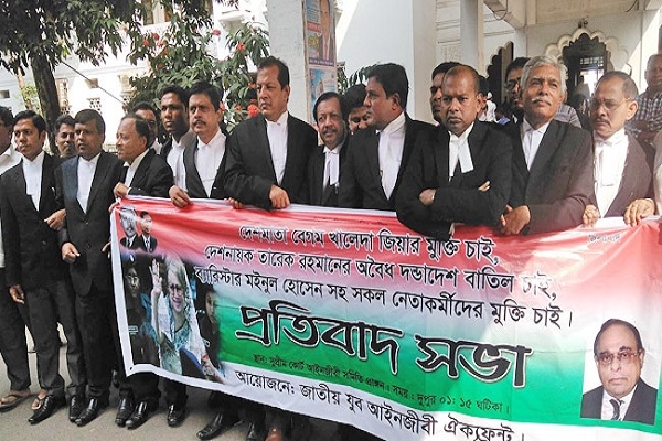 খালেদা জিয়ার মুক্তির দাবিতে আইনজীবীদের বিক্ষোভ