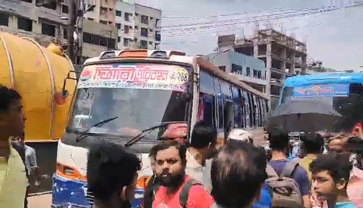 খিলগাঁওয়ে ‘তরঙ্গ’ বাসের ধাক্কায় নিহত ১, বাসে আগুন