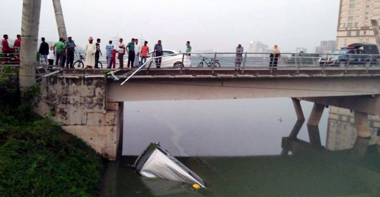 হাতিরঝিলে ব্রিজের রেলিং ভেঙে পানিতে গাড়ি