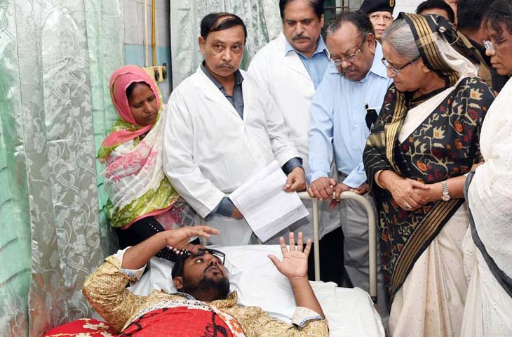 আহত কর্মীদের দেখতে হাসপাতালে প্রধানমন্ত্রী
