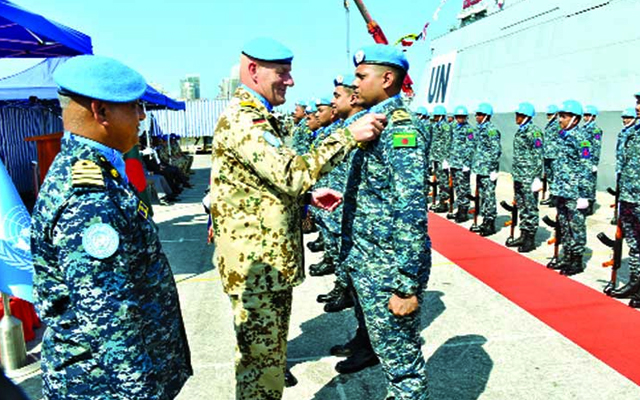 লেবাননে জাতিসংঘ শান্তিরক্ষা মেডেল পেলেন বাংলাদেশ নৌবাহিনীর ১১০ সদস্য