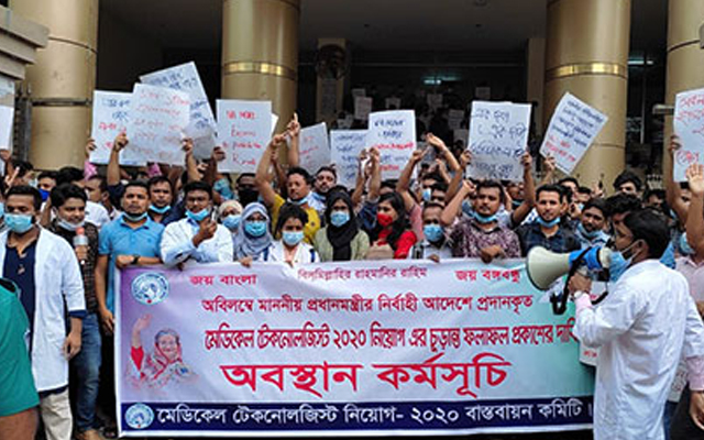 স্বাস্থ্য অধিদপ্তরের সামনে মেডিক্যাল টেকনোলজিস্টদের বিক্ষোভ