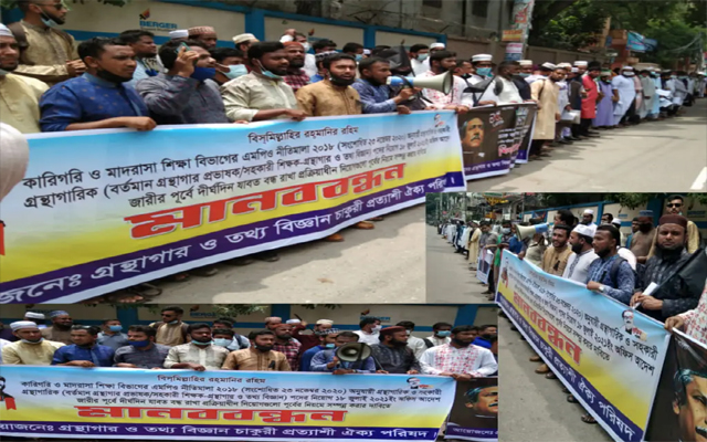 প্রক্রিয়াধীন নিয়োগগুলো সম্পন্ন করার দাবিতে গ্রন্থগারিক চাকরি প্রত্যাশীদের মানববন্ধন
