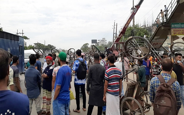 যাত্রাবাড়ী মহাসড়কে রিকশা চলতে না দেওয়ার অভিযোগ