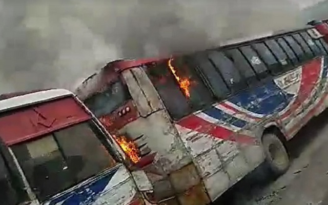 রাজধানীর রামপুরায় বাসে আগুন