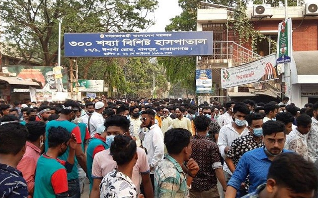 নারায়ণগঞ্জে করোনা হাসপাতালের সামনে ছাত্রলীগের আনন্দ র্যালি