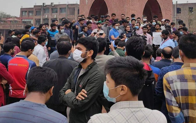 জাবি উপাচার্যের বাসভবনের সামনে বিক্ষুব্ধ শিক্ষার্থীদের অবস্থান