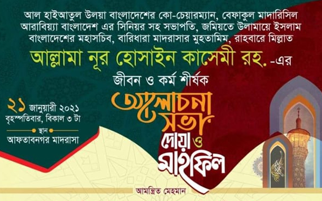 আল্লামা কাসেমী রহ. এর জীবন ও কর্ম শীর্ষক আলোচনা সভা আগামীকাল