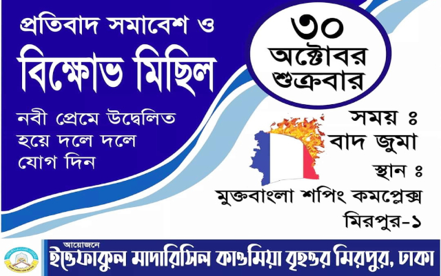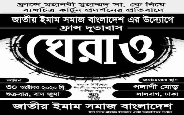 এবার ঢাকাস্থ ফ্রান্স দূতাবাস ঘেরাও করবে জাতীয় ইমাম সমাজ বাংলাদেশ