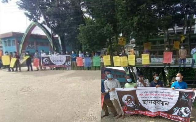 ধর্ষণের বিরুদ্ধে ফুলপুরে ‘সাধারণ শিক্ষার্থীদের’ ব্যানারে মানববন্ধন