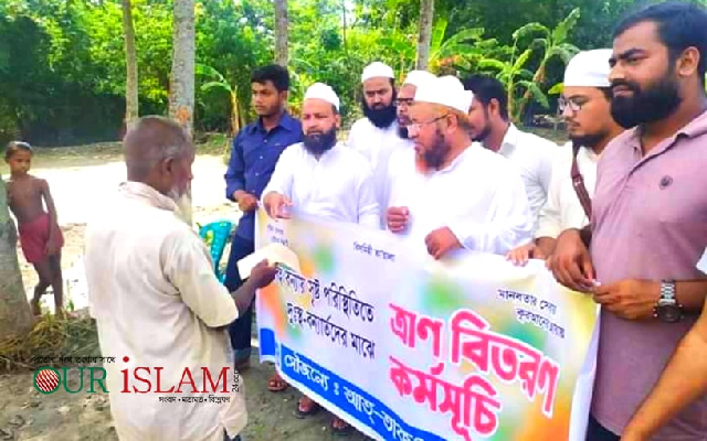 ঈশ্বরগঞ্জে বন্যায় ক্ষতিগ্রস্তদের পাশে একদল তরুণ আলেম
