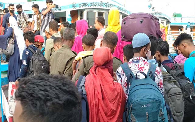 শিমুলিয়া ঘাটে ঢাকামুখী যাত্রীর চাপ