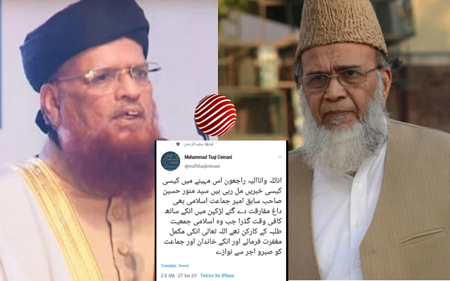 পাকিস্তান জামায়াতের সাবেক আমিরের মৃত্যুতে মুফতি তাকি উসমানীর শোক