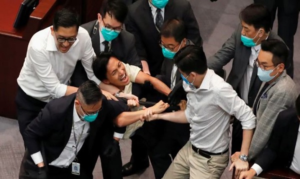 হংকং সংসদে বিরোধীদের মারামারি