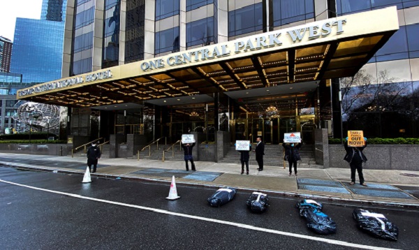 লাশ বহনের ব্যাগ রেখে ট্রাম্প হোটেলের সামনে বিক্ষোভ