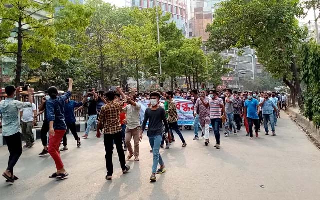 লকডাউনে মার্কেট খোলা রাখার দাবিতে রাজধানীতে ব্যবসায়ীদের বিক্ষোভ