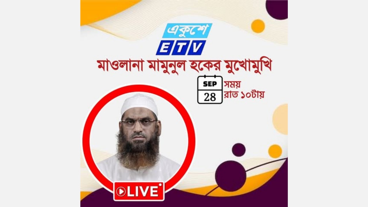 আজ রোববার (২৮ সেপ্টেম্বর) রাত ১০টায় একুশে টিভির মুখোমুখি হবেন মাওলানা মামুনল হক।