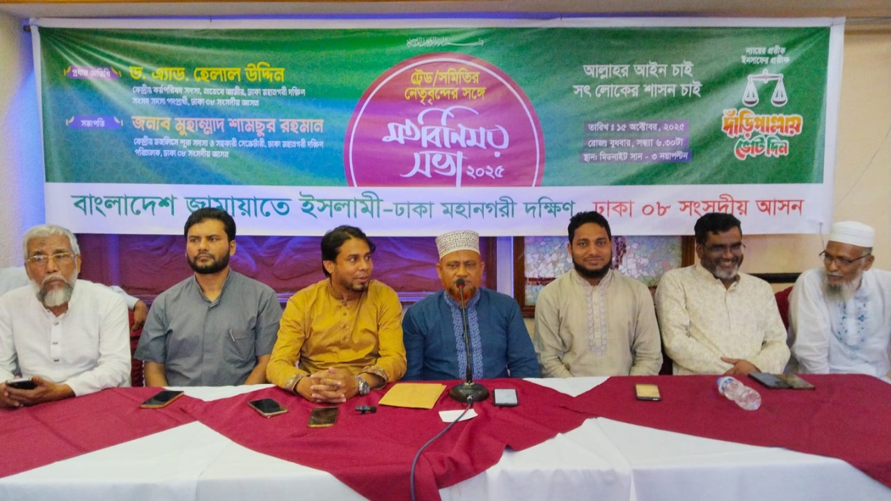 বুধবার (১৫ অক্টোবর) সন্ধ্যায় বাংলাদেশ জামায়াতে ইসলামী ঢাকা মহানগরী দক্ষিণের উদ্যোগে ঢাকা-৮ সংসদীয় এলকার ট্রেড/সমিতির নেতৃবৃন্দের সঙ্গে মতবিনিময় সভায় প্রধান অতিথির বক্তব্যে তিনি এসব কথ বলেন। এসময় তিনি, জাতির স্বার্থে নভেম্বরে জুলাই সনদের গণভোট এবং ফেব্রুয়ারিতে পিআর পদ্ধতিতে জাতীয় নির্বাচন আয়োজন করতে অন্তর্বর্তীকালীন সরকারের প্রতি আহ্বান জানান।