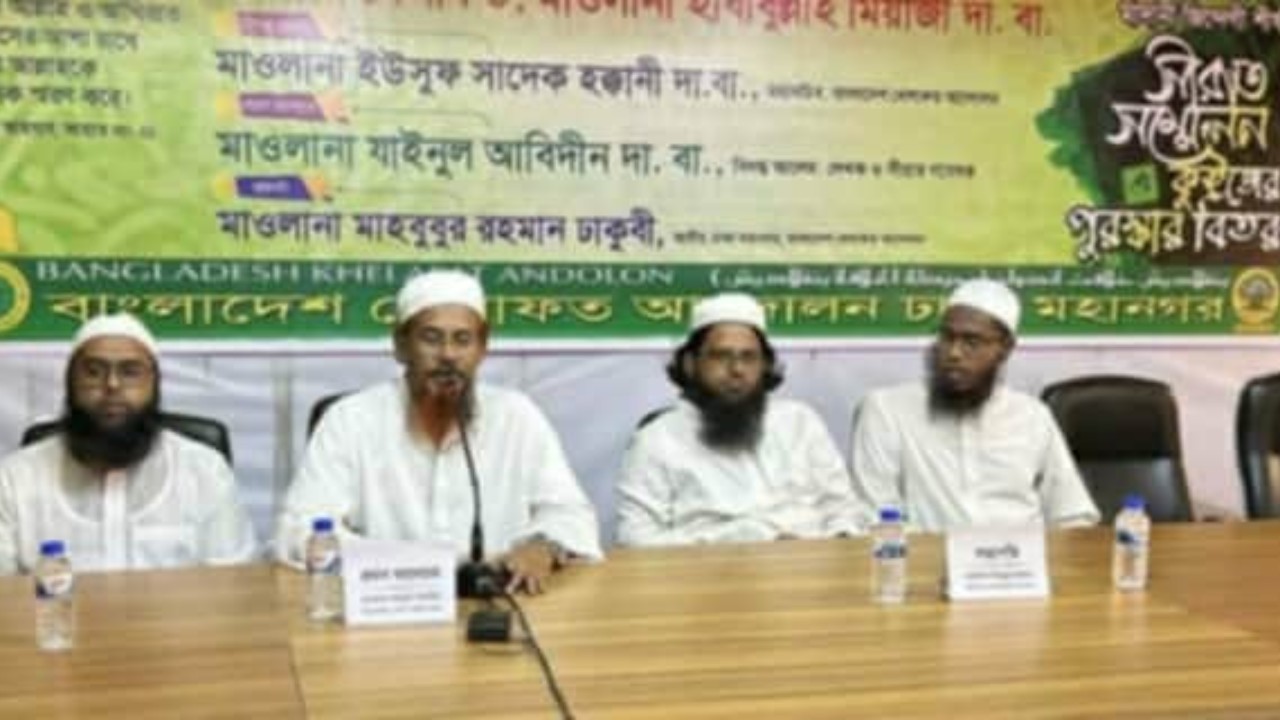 বৃহস্পতিবার (১৬ অক্টোবর ২০২৫) বিকাল ৩ টায় রাজধানীর পুরানা পল্টনস্থ ইকোনোমিক রিপোর্টার্স ফোরাম মিলনায়তনে বাংলাদেশ খেলাফত আন্দোলন ঢাকা মহানগর আয়োজিত 'রাসূলে আরাবী সাল্লাল্লাহু আলাইহি ওয়া সাল্লামের মাদানী জিন্দেগী' শীর্ষক সীরাত সম্মেলন ও কুইজের পুরস্কার বিতরণ অনুষ্ঠানে প্রধান অতিথির বক্তব্যে তিনি এসব কথা বলেন।