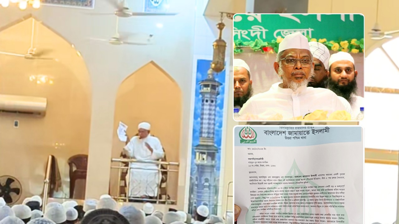 এর আগে উত্তরা পশ্চিম থানা বাংলাদেশ জামায়াতে ইসলামীর দপ্তর সম্পাদক জিএম আসলামের পক্ষ থেকে একটি চিঠি দেওয়া হয় মসজিদের সভাপতি/সেক্রেটারি বরাবর। চিঠিতে লেখা হয়-