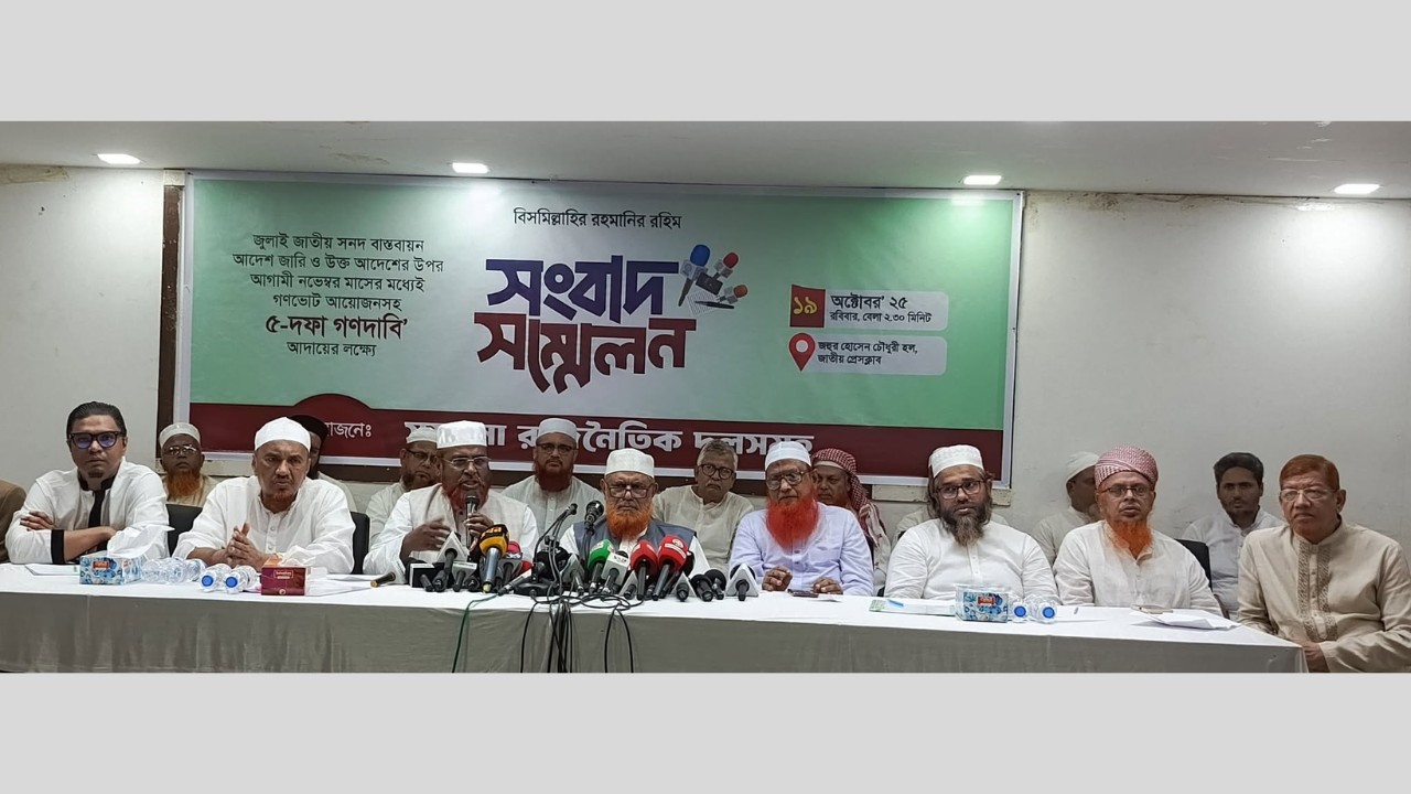 এদিকে বেলা আড়াইটার দিকে জাতীয় প্রেস ক্লাবে এক সংবাদ সম্মেলনে খেলাফত মজলিসের মহাসচিব ড. আহমেদ আবদুল কাদের বলেন, ‘আমাদের দাবিগুলোর মধ্যে রয়েছে, জুলাই জাতীয় সনদ বাস্তবায়নে আদেশ জারি ও ওই আদেশের ওপর আগামী নভেম্বর মাসের মধ্যে গণভোট আয়োজন, পিআর পদ্ধতিতে নির্বাচন প্রভৃতি।’