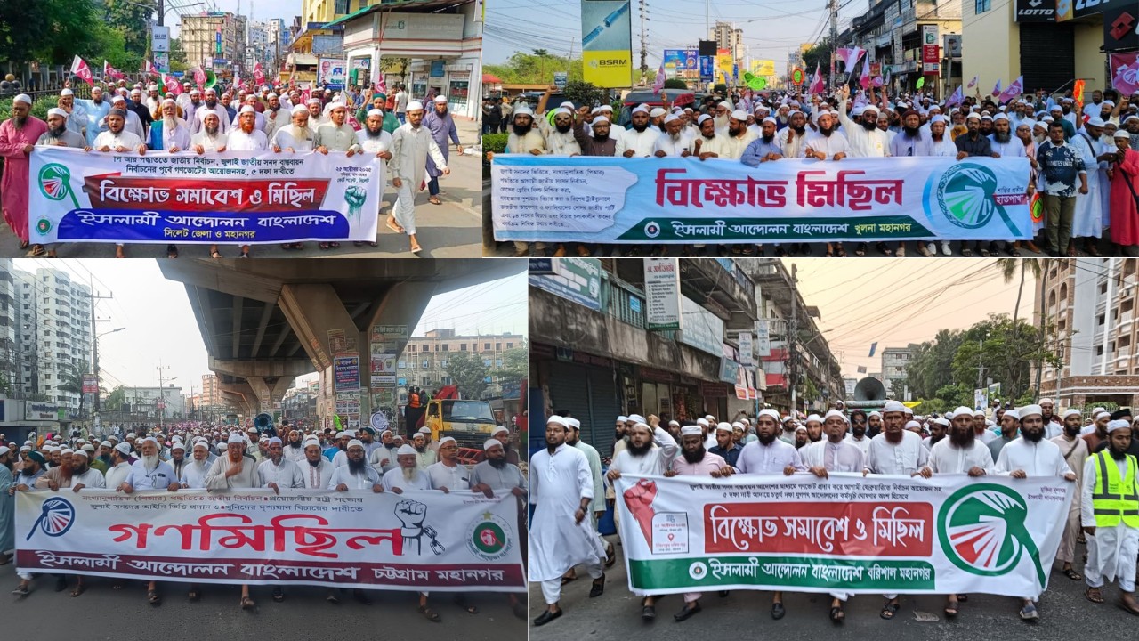 তফসিলের আগে গণভোট আয়োজন করা, জুলাই সনদের আইনি ভিত্তির জন্য সাংবিধানিক আদেশ দেওয়া, জুলাই সনদের ভিত্তিতে পিআর পদ্ধতিতে জাতীয় নির্বাচন, গণহত্যার বিচার, নির্বাচনের লেভেল প্লেয়িং ফিল্ড নিশ্চিত করা, ফ্যাসিবাদের দোসরদের বিচার ও বিচারকালীন কার্যক্রম নিষিদ্ধকরণের দাবিতে চলমান যুগপৎ আন্দোলনের চতুর্থ ধাপের কর্মসূচির অংশ হিসেবে শনিবার ((২৫ অক্টোবর) দেশের সকল বিভাগীয় শহরে বিক্ষোভ মিছিল করেছে ইসলামী আন্দোলন বাংলাদেশ।