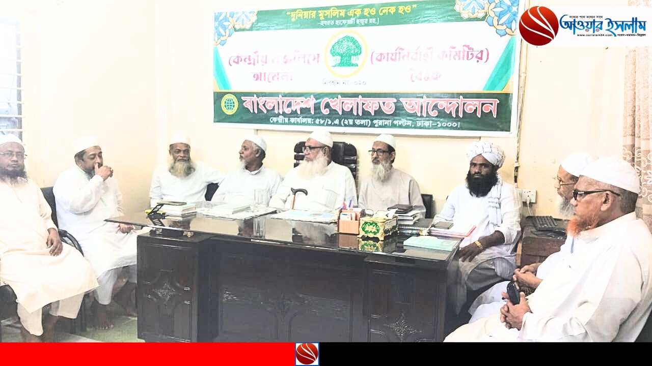 বাংলাদেশ খেলাফত আন্দোলন এর কেন্দ্রীয় মজলিশে আমেলার সভা বৃহস্পতিবার ৬ই নভেম্বর বিকেলে সংগঠনের ৫১/১ পুরানা পল্টনাস্থ কেন্দ্রীয় দপ্তরে দলের আমীরে শরীয়ত মাওলানা আবু জাফর কাশেমীর সভাপতিত্বে অনুষ্ঠিত হয়।