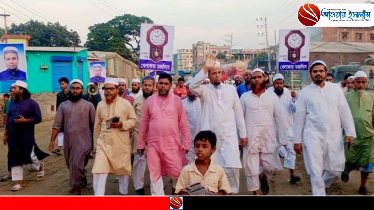 এসময় নেতৃবৃন্দ জনসাধারণের মাঝে খেলাফত মজলিস ও দেওয়াল ঘড়ি মার্কার পক্ষে লিফলেট বিতরণ করেন এবং বিভিন্ন স্লোগান দেন।