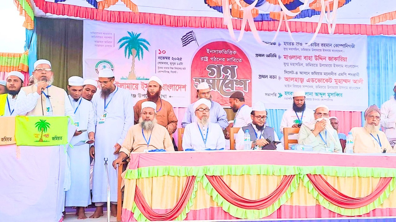 সোমবার (১০ নভেম্বর) বিকেল ৩ টায় সিলেটের কোম্পানীগঞ্জ উপজেলার টুকের বাজার উচ্চ বিদ্যালয় মাঠে ইনসাফ ভিত্তিক রাষ্ট্র গঠনের দাবিতে আয়োজিত গণ সমাবেশে প্রধান বক্তার বক্তব্যে এসব কথা বলেন তিনি।