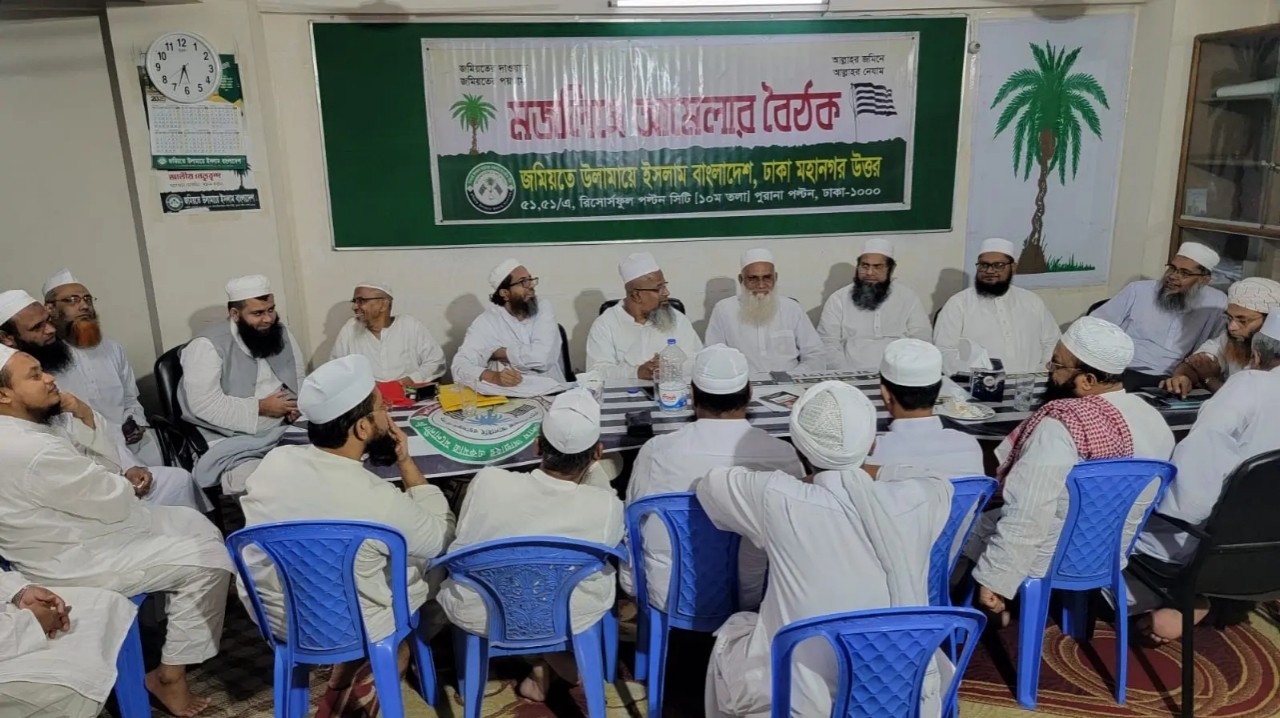 সোমবার (১০ নভেম্বর) ঢাকা মহানগর উত্তরের সভাপতি মুফতি মকবুল হোসাইন কাসেমীর সভাপতিত্বে ও মাওলানা নূর মোহাম্মদ কাসেমীর পরিচালনায় মাসিক গুরুত্বপূর্ণ বৈঠক জমিয়ত কার্যালয়ে অনুষ্ঠিত হয়।