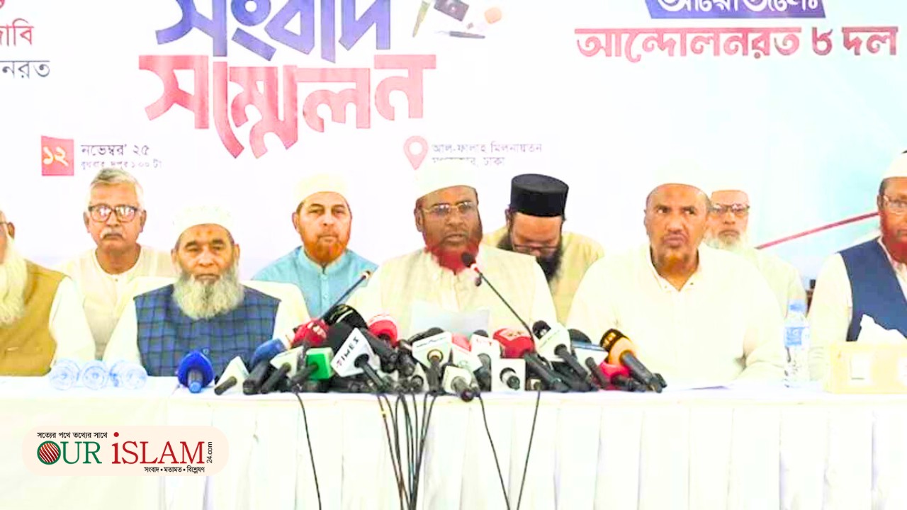 ১৬ নভেম্বরের মধ্যে জুলাই সনদের আইনি ভিত্তিসহ পাঁচ দফা দাবি বাস্তবায়ন না হলে প্রধান উপদেষ্টার সরকারি বাসভবন ‘যমুনা’র সামনে অনির্দিষ্টকালের জন্য অবস্থান কর্মসূচি পালনের ঘোষণা দিয়েছে জামায়াতে ইসলামী, ইসলামী আন্দোলনসহ আটটি ইসলামি দল।
