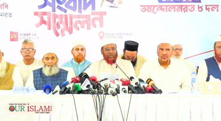 বুধবার (১২ নভেম্বর) দুপুরে মগবাজার আল ফালাহ মিলনায়তনে যৌথ সংবাদ সম্মেলনে ৮ দলের পক্ষ থেকে জামায়াতে ইসলামীর নায়েবে আমির অধ্যাপক মুজিবুর রহমান এই ঘোষণা দেন।
