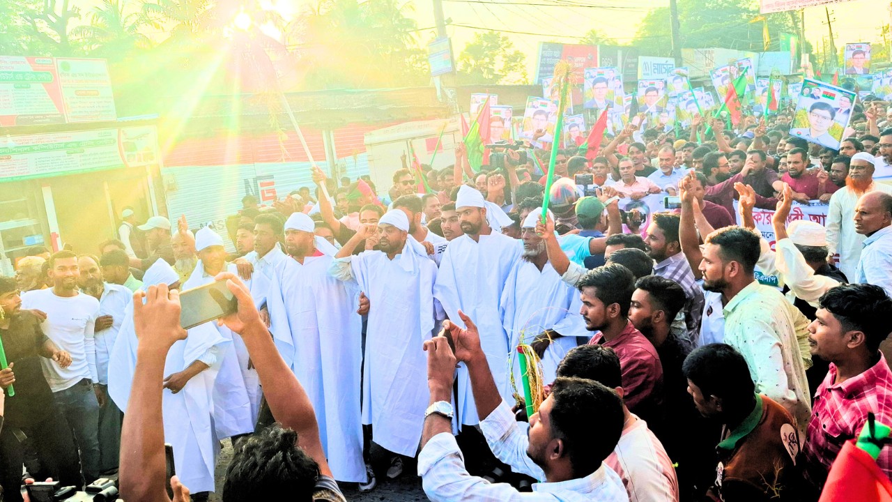 নোয়াখালীতে বিএনপির প্রার্থী পরিবর্তনের দাবিতে কাফনের কাপড় পরে বিক্ষোভ
