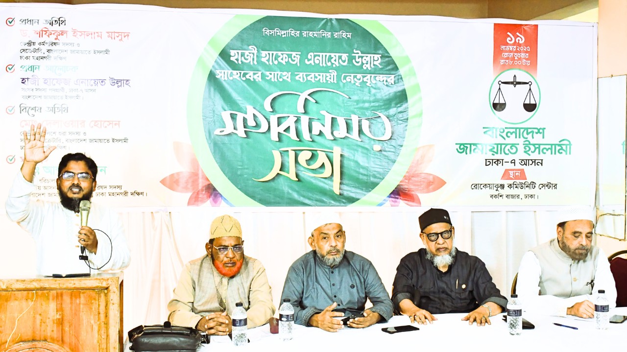 বাংলাদেশ জামায়াতে ইসলামী কেন্দ্রীয় মজলিসে শূরা সদস্য ও ঢাকা মহানগরী দক্ষিণের সহকারী সেক্রেটারি মুহাম্মদ দেলাওয়ার হোসেন বলেছেন, ন্যায় এবং ইনসাফ ভিত্তিক বাংলাদেশ গড়তে চায় জামায়াতে ইসলামী। এজন্য কৃষক, শ্রমিক, ছাত্র, জনতা, পেশাজীবি ও সম্মানিত ব্যবসায়ীদের জামায়াতে ইসলামীর নেতৃত্বে এগিয়ে আসতে হবে। জামায়াতে ইসলামী রাষ্ট্র পরিচালনার সুযোগ পেলে রাষ্ট্রের সকল স্টেকহোল্ডারদের অংশগ্রহনে দুর্নীতিমুক্ত, সন্ত্রাসমুক্ত, চাঁদাবাজমুক্ত এক কল্যাণ ও মানবিক বাংলাদেশ গড়ে তুলবে। তিনি বলেন, বর্তমান সমাজ ব্যবস্থা দুর্নীতি-সন্ত্রাস ও চাঁদাবাজ ভয়াবহ ব্যাধিতে রূপ নিয়েছে। ব্যবসায়ী সমাজ সন্ত্রাসী আর চাঁদাবাজদের অত্যাচারে অতিষ্ট। সমাজে শান্তি প্রতিষ্ঠার জন্য নতুন নেতৃত্বের প্রয়োজন। পুরাতন দুর্নীতিগ্রস্ত নেতৃত্বের পরিবর্তে দুর্নীতিমুক্ত, সন্ত্রাসমুক্ত, চাঁদাবাজমুক্ত সৎ ও দক্ষ নেতৃত্বকে নির্বাচিত করতে হবে। বুধবার রাতে বাংলাদেশ জামায়াতে ইসলামী ঢাকা–৭ আসনের উদ্যোগে স্থানীয় ব্যবসায়ী নেতৃবৃন্দের সঙ্গে অনুষ্ঠিত মতবিনিময় সভার প্রধান অতিথির বক্তব্যে তিনি এসব কথা বলেন।