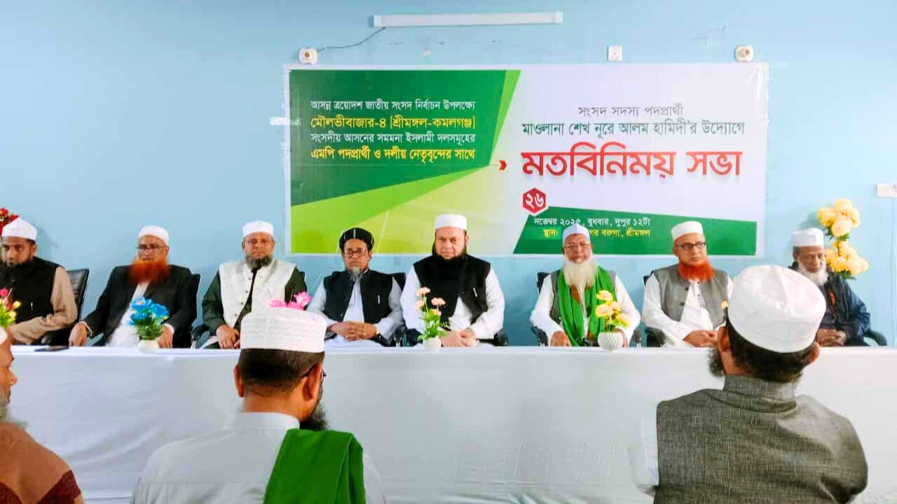 আসন্ন ত্রয়োদশ জাতীয় সংসদ নির্বাচনকে সামনে রেখে মৌলভীবাজার জেলায় সক্রিয় সমমনা ইসলামী দলসমূহ বৃহত্তর ইসলামী ঐক্য প্রক্রিয়ায় ঐকমত্য পোষণ করেছে। জেলা পর্যায়ের শীর্ষ নেতৃবৃন্দ ও এমপি পদপ্রার্থীদের অংশগ্রহণে শনিবার (২৬ নভেম্বর) বিকেল ২টায় মৌলভীবাজারের শ্রীমঙ্গলের বরুণায় আয়োজিত এক মতবিনিময় সভায় তারা এই অবস্থান তুলে ধরেন।
